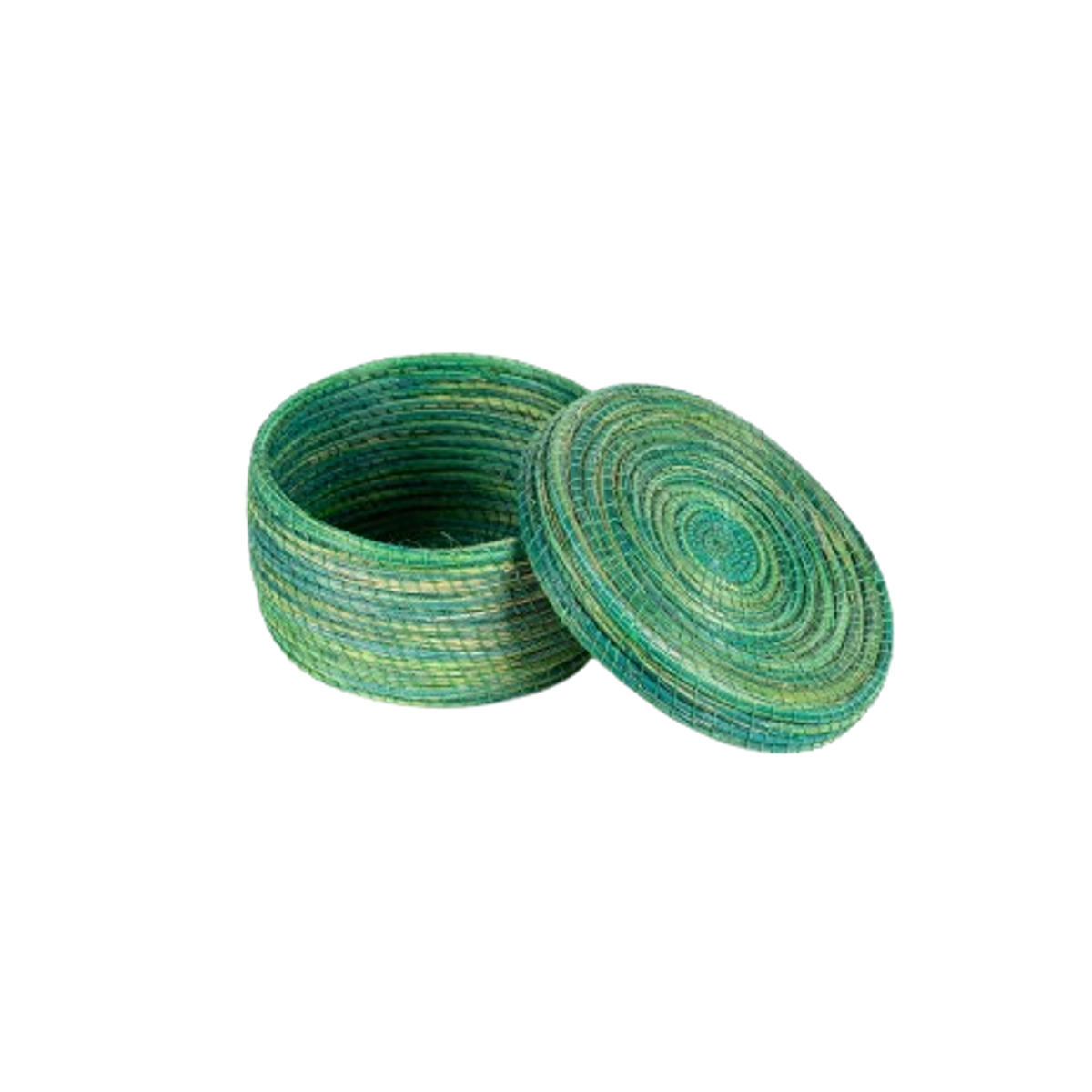 Boite de rangement en fibres naturelles végétales coloré tissé à la main petit modèle en Vert