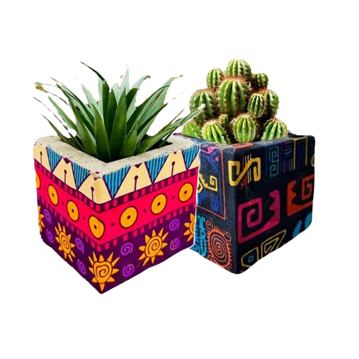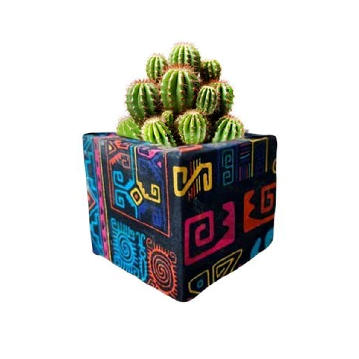 AccueilArt & déco Cache pot carré haut de gamme en tissu coton wax de qualité supérieure et structure en bois dur C 2