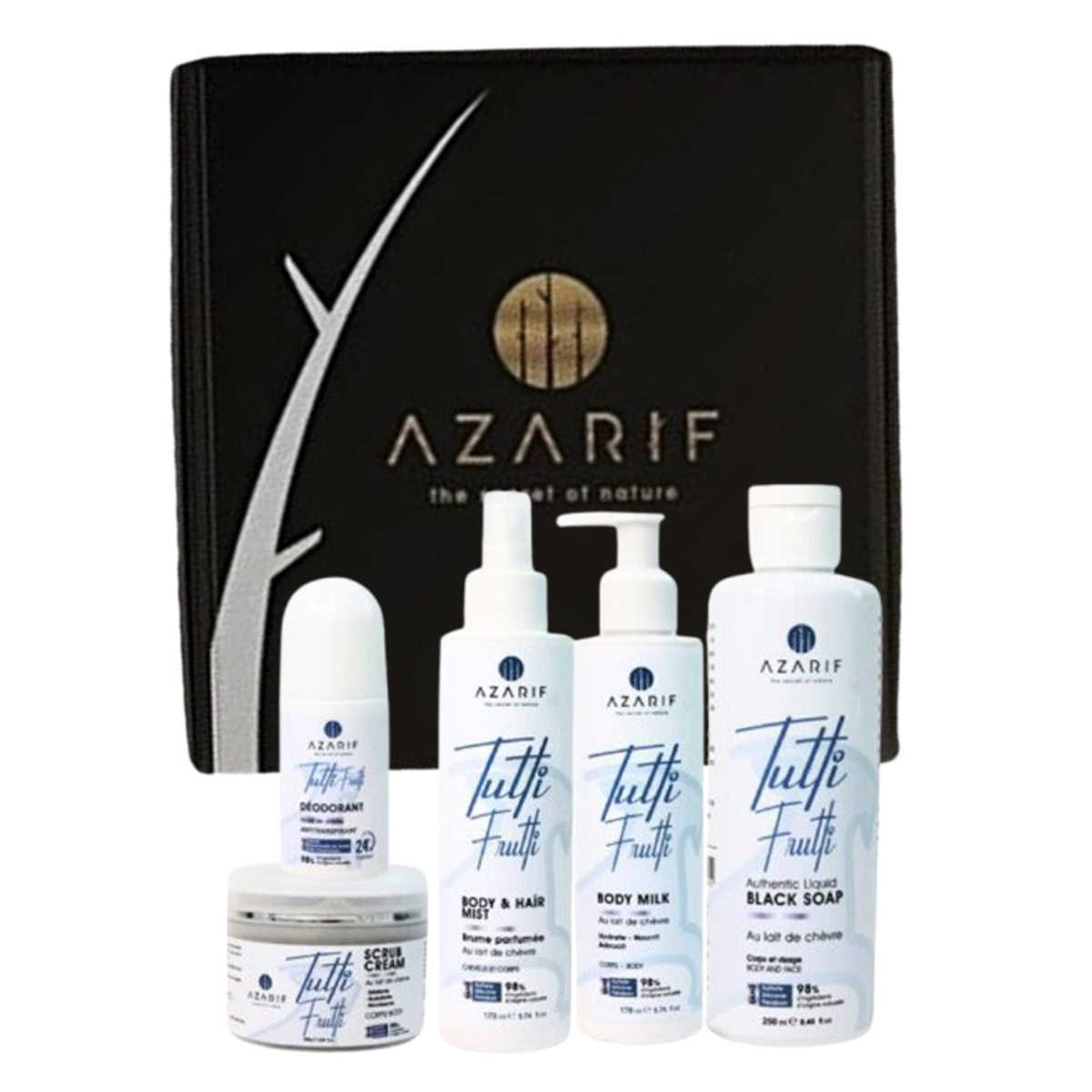 Coffret de 5 Pièces – Gamme soin du corps –Tutti Frutti Douceur Sucrée et Soin au Lait de Chèvre Chèvre