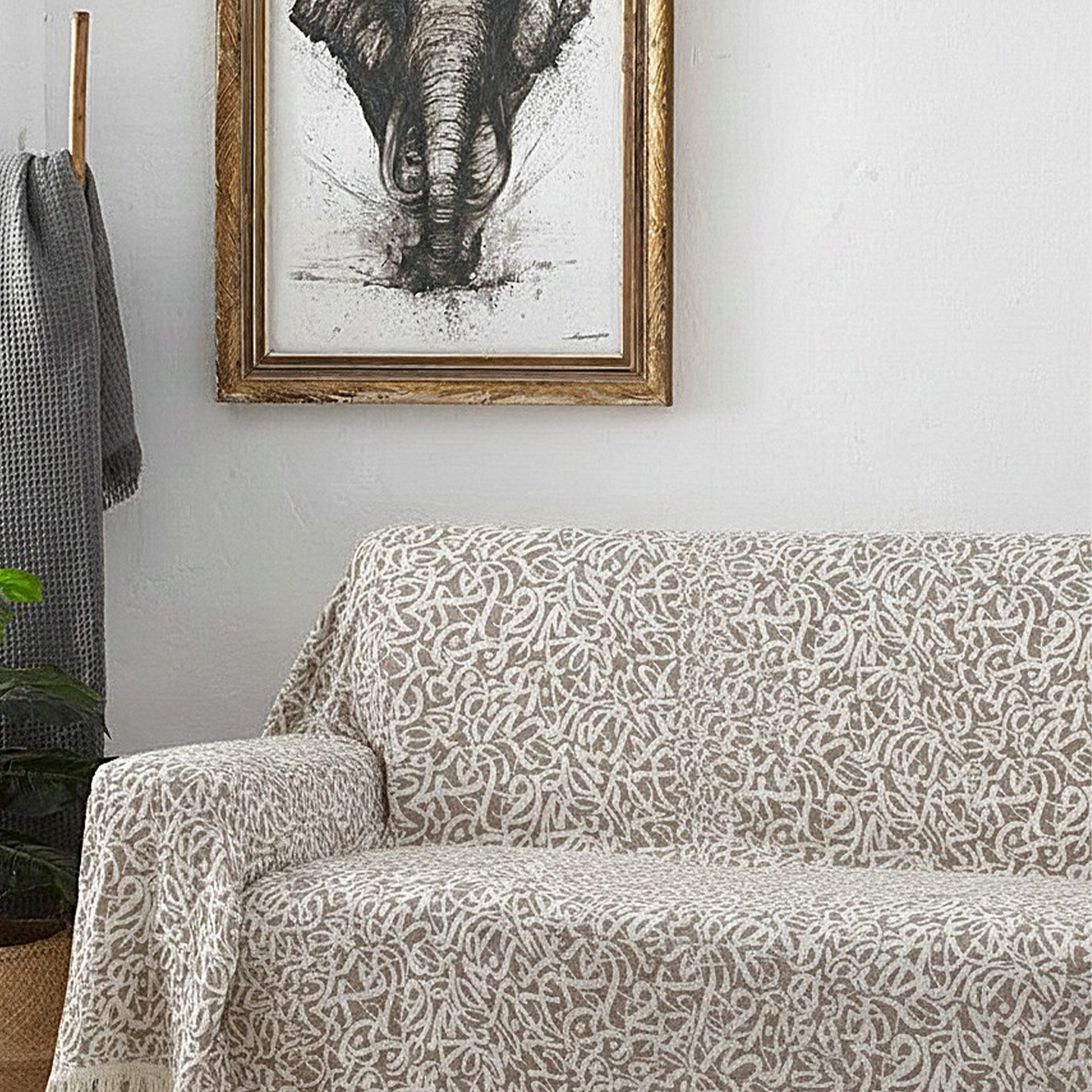 AccueilMaison & décoMaison & lifestyle Coffret de Jetée de canapé, plaid artisanale bicolor multi usage haut de gamme en coton motif Calligraphie double face finition bord franges sur 4 côtés M7