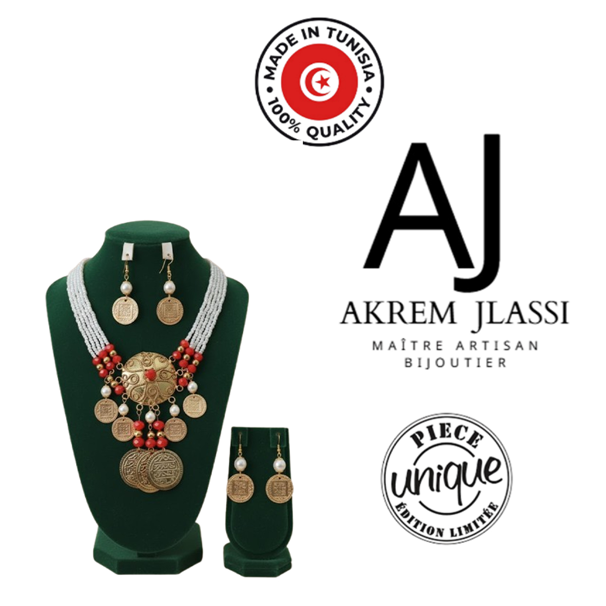 La maison de bijoux AKRAM JLASSI Soutenir l’artisanat local et préserver un savoir-faire unique, pour vous offrir la meilleure qualité à un prix accessible et préserver l’emploi, nous sommes fiers de vous offrir des produits de fabrication artisanale à 100% fabriqués en Tunisie