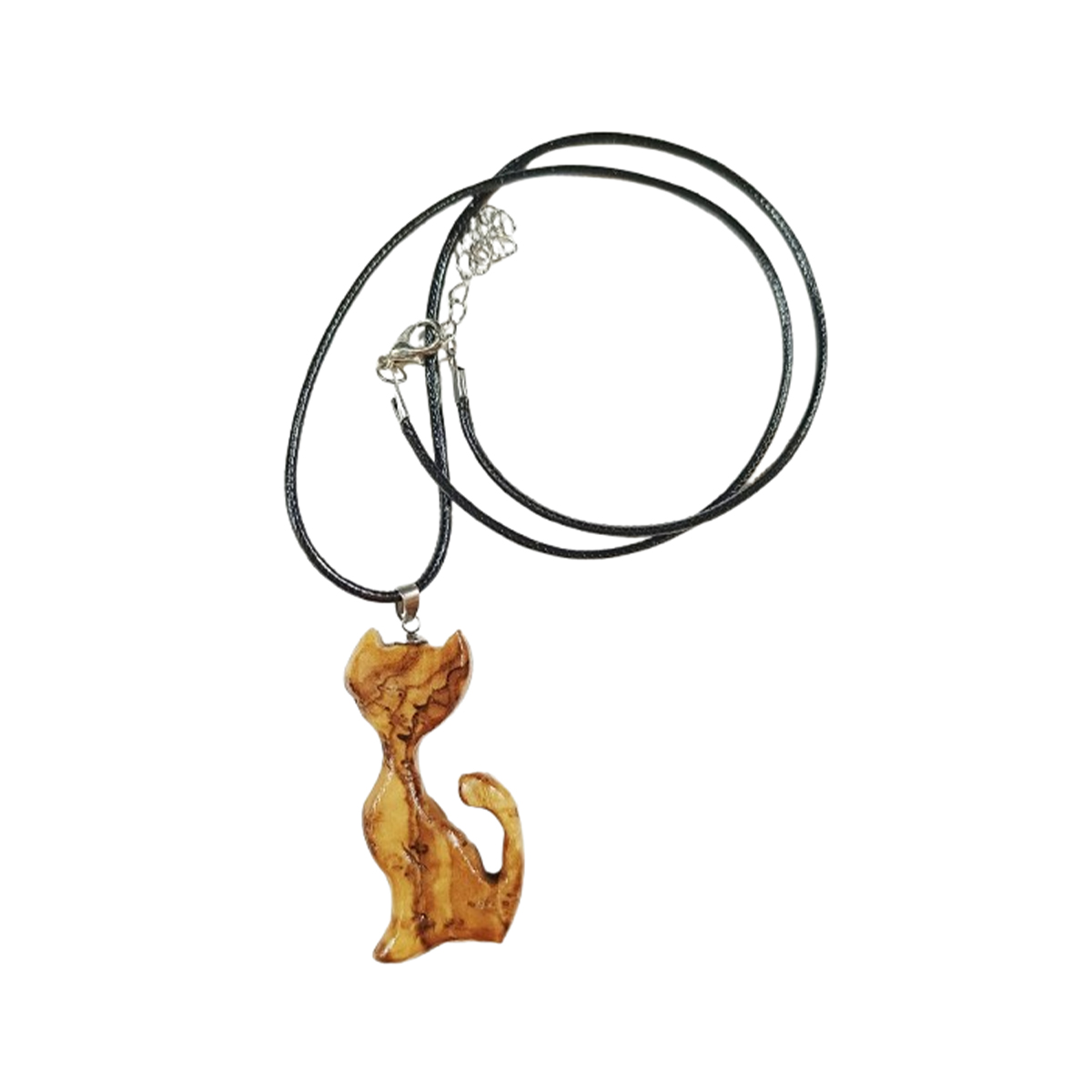 AccueilBijoux & accessoires Collier orné d’un pendentif en bois noble sculpté en forme de chat. Inspiré de la nature