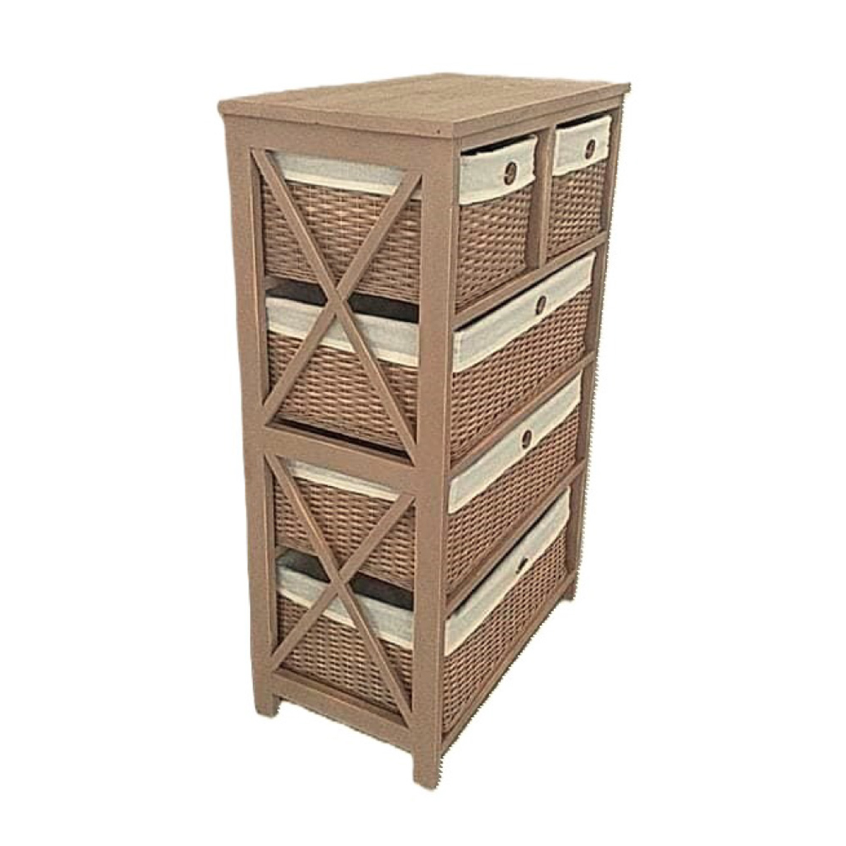 AccueilMaison & décoRangements Commode XL en rotin de style vintage avec cinq paniers tiroirs en rotin naturel tissé à la main insérés dans un cadre en bois naturel