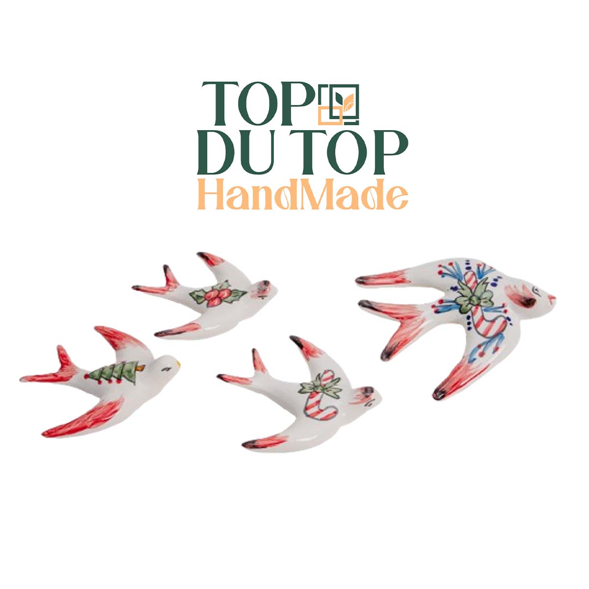 AccueilCadeaux Décorations murales Hirondelles en plein vol en décoration noël en fine Céramique émaillée fait main PM