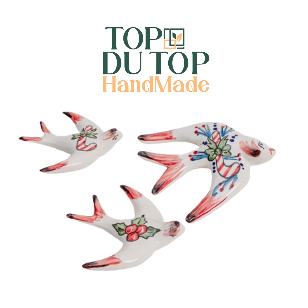 Décorations murales Hirondelles en plein vol en décoration noël en fine Céramique émaillée fait main PM د.ت28.000 Le prix initial était : د.ت28.000.د.ت16.900Le prix actuel est : د.ت16.900.