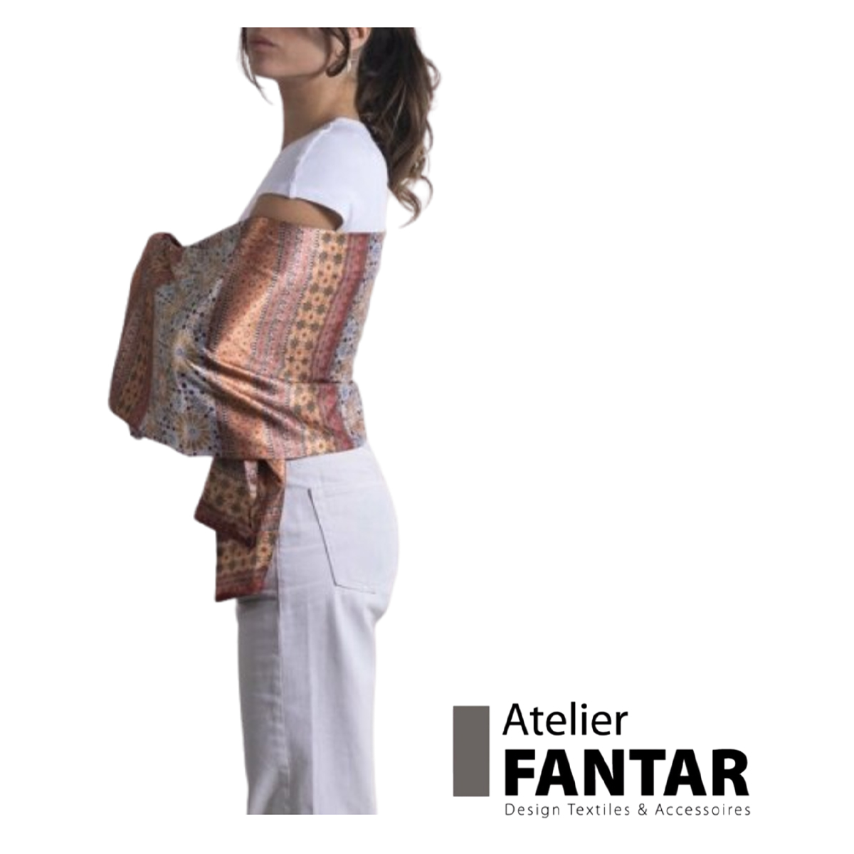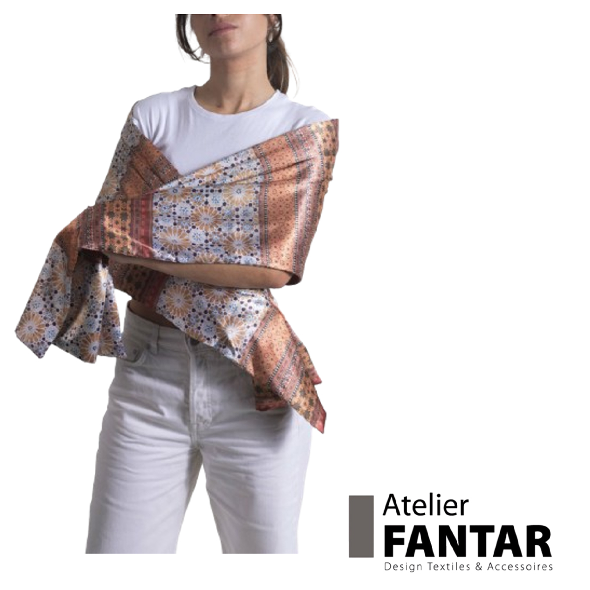 Écharpe en soie artisanale Essentia haut de gamme signée Atelier Fantar de la Collection printemps-été 2025