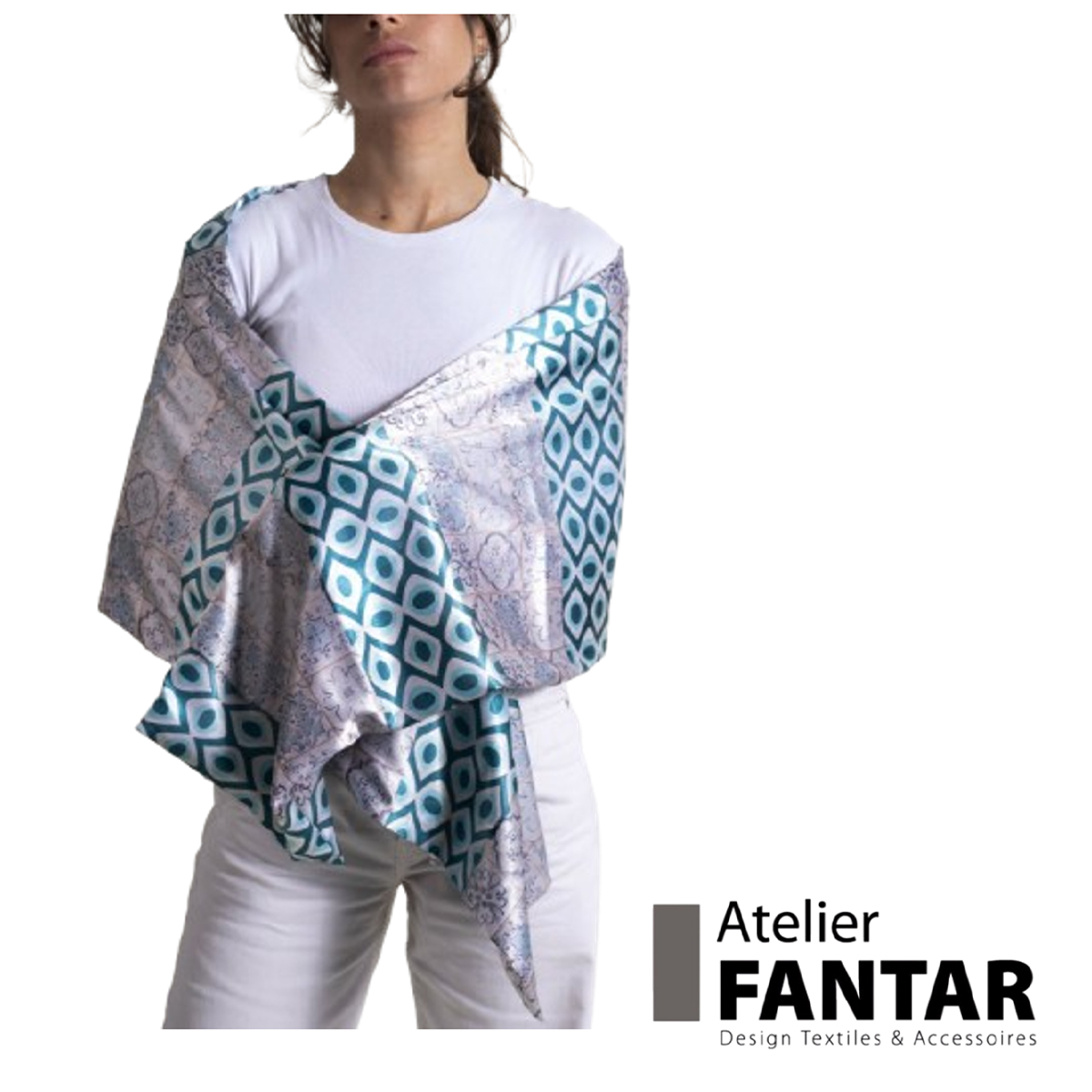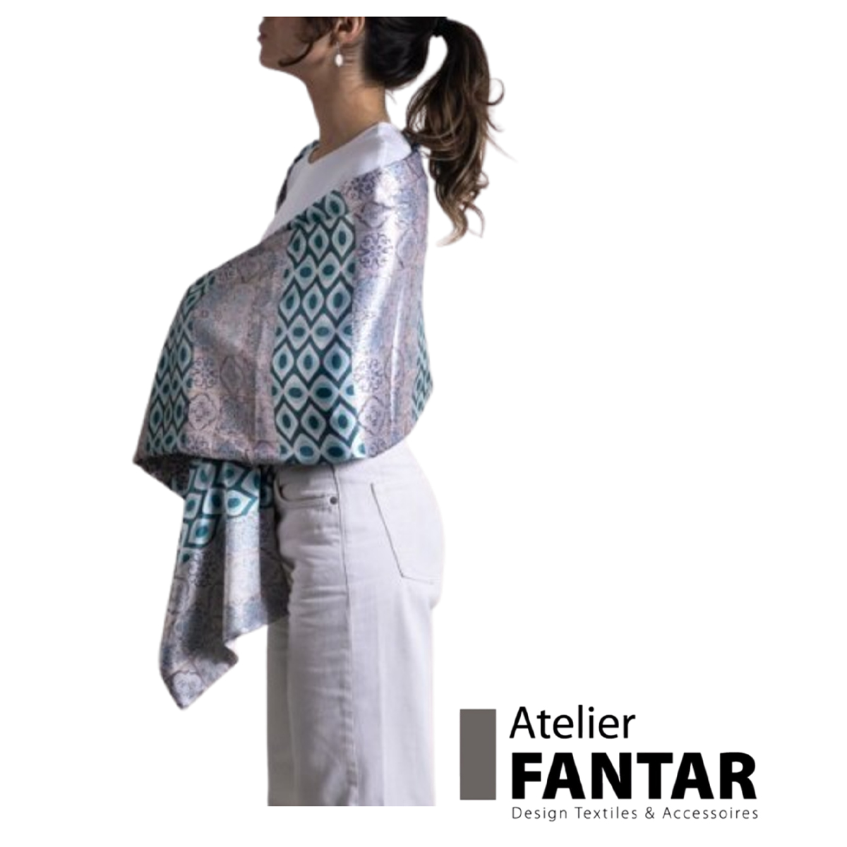 Découvrez les pièces uniques issues de notre collection printemps-été 2025. Ces pièces prestigieuses sont des œuvres réalisées dans notre atelier. Ajoutez une touche de sophistication à votre style avec cette écharpe en soie artisanale haut de gamme signée Atelier Fantar. Confectionnée avec soin, ses dimensions généreuses de 180 cm sur 40 cm apportent légèreté et élégance à chaque mouvement.