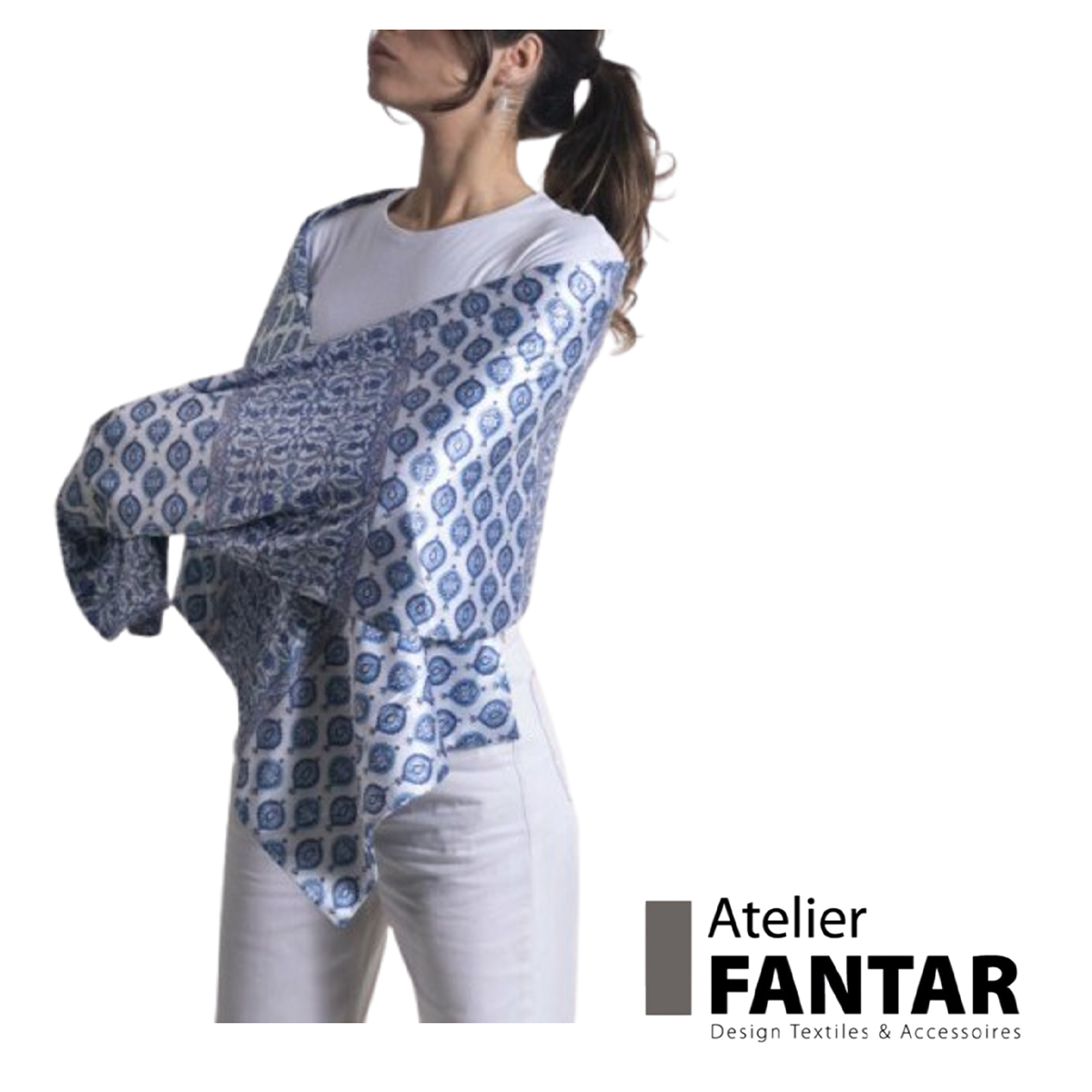 Écharpe en soie artisanale Zephyra haut de gamme signée Atelier Fantar de la Collection printemps-été 2025