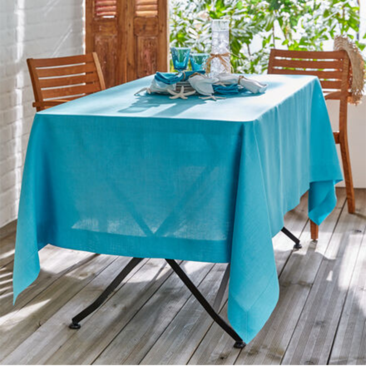 AccueilMaison & décoMaison & lifestyle Ensemble 1 Nappe et 6 Serviette de Table haut de gamme en Bleu turquoise confectionnée en 100% lin قمرايا raffinées fait à la main M36