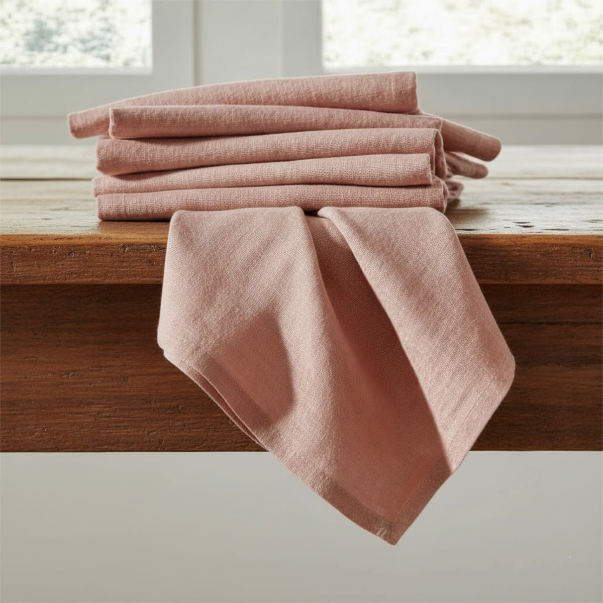 Ensemble 1 Nappe et 6 Serviette de Table haut de gamme en Rose confectionnée en 100% lin قمرايا raffinées fait à la main M29