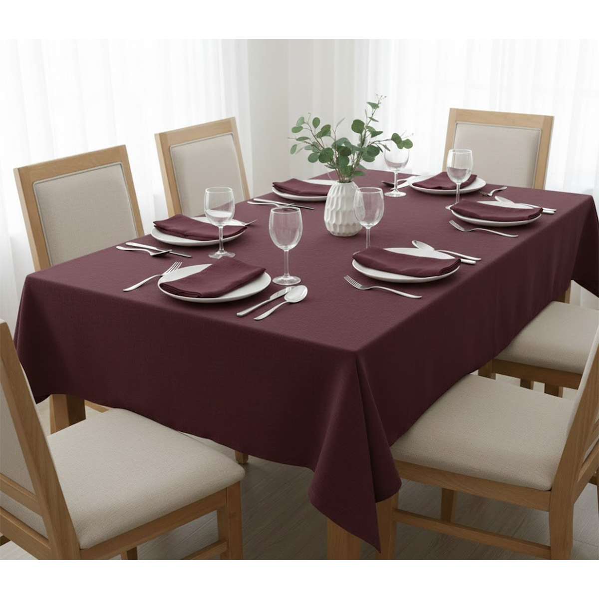 AccueilMaison & décoMaison & lifestyle Ensemble 1 Nappe et 6 Serviette de Table haut de gamme en Rouge bordeau confectionnée en 100% lin قمرايا raffinées fait à la main M27