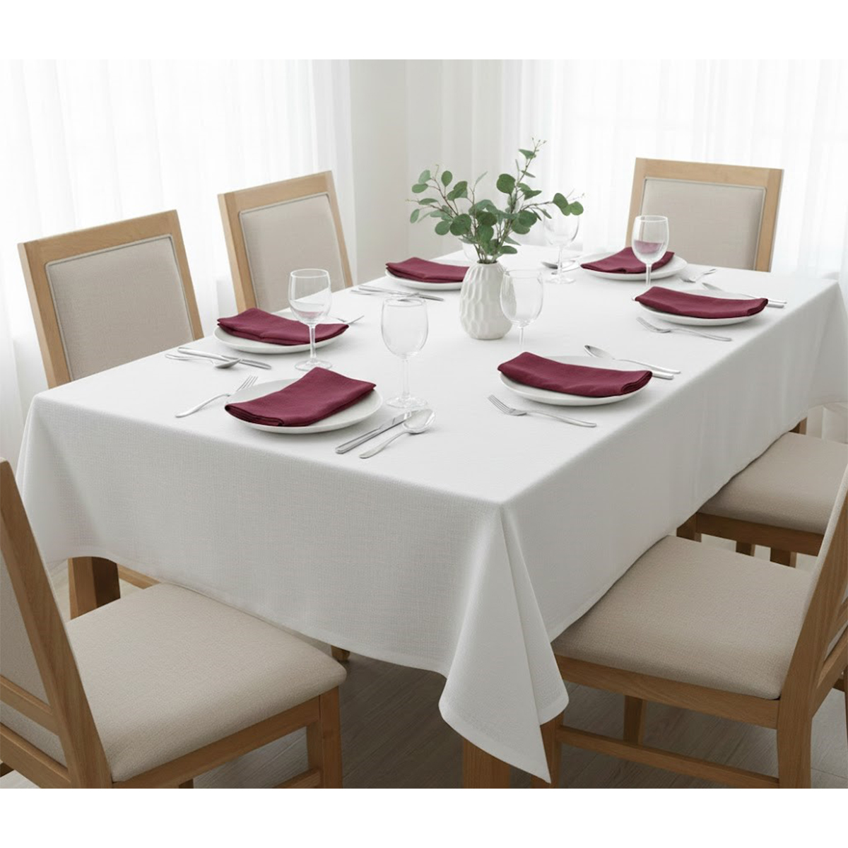 Le luxe et l’élégance sont au rendez-vous avec notre linge de table. Découvrez la touche luxueuse de notre nappe rectangulaire haut de gamme confectionnée en 100% lin قمرايا raffinées fait à la main avec 6 serviettes assorties. Elle offre un tombé fluide, un toucher naturel et une matière respirante. Un confort exceptionnel, une pièce maîtresse visuellement époustouflante qui rehausse votre table