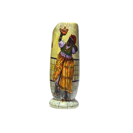 Vase haute gamme en bois d’olivier peint à la main motif scène de stambali de la collection Souvenir De Tunisie