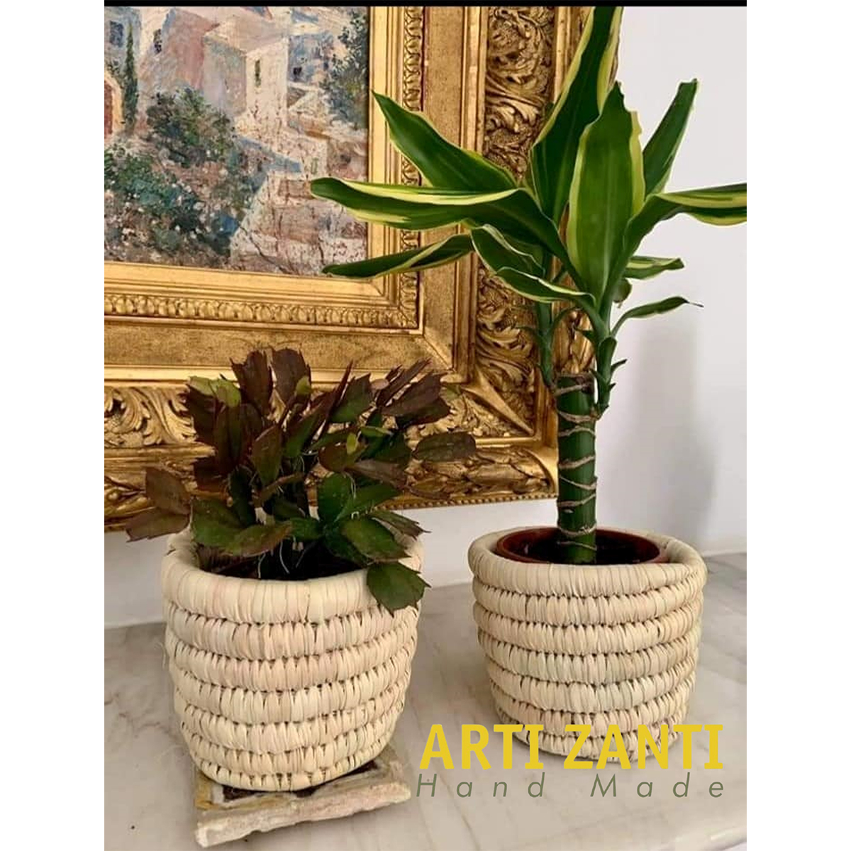 AccueilArt & déco Ensemble de 2 Cache pots ronds en couleur naturel rustique tressés à la main en fibres naturelles de palmier