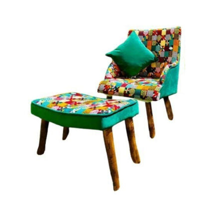 Ensemble de Fauteuil plus pouf design vintage en wax haut de gamme avec deux coussins en wax de qualité supérieure colorés assorties د.ت1,700.000