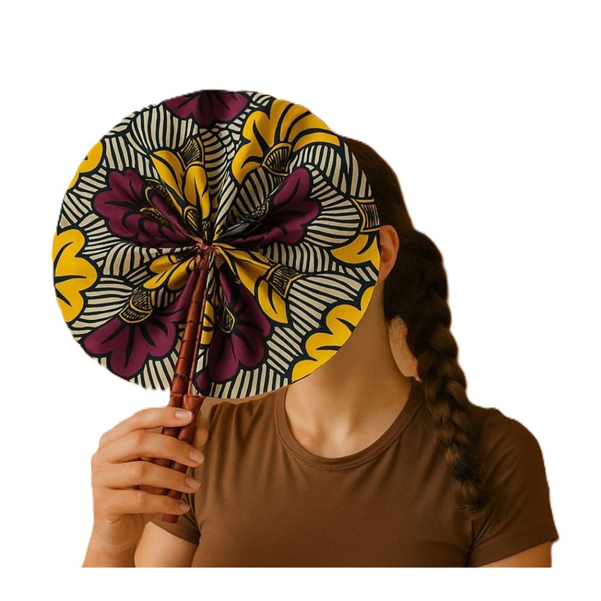 Entièrement fabriqué à la main, Éventail artisanal en tissus africain wax avec un grand soin et avec une attention méticuleuse portée aux détails