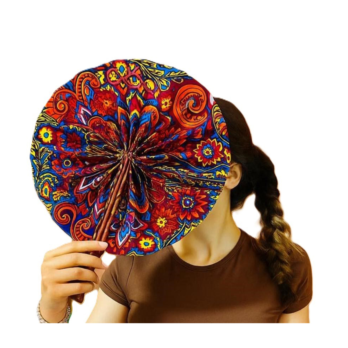Entièrement fabriqué à la main, Éventail artisanal en tissus africain wax avec un grand soin et avec une attention méticuleuse portée aux détails