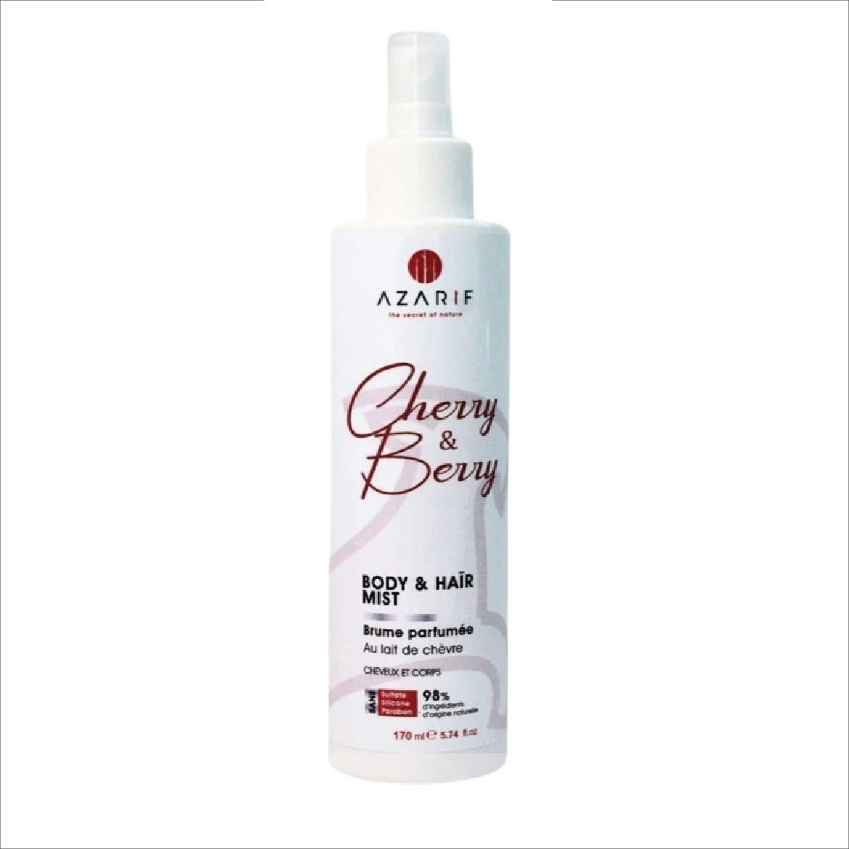 Body and haïr mist – Cherry & Berry Laissez-vous tenter par l’expérience rafraîchissante et nourrissante de notre brume parfumée sans alcool, enrichie au lait de chèvre. Avec 98 % d’ingrédients naturels, cette brume hydrate et nourrit votre peau et vos cheveux, vous laissant une sensation de fraîcheur et de rajeunissement.