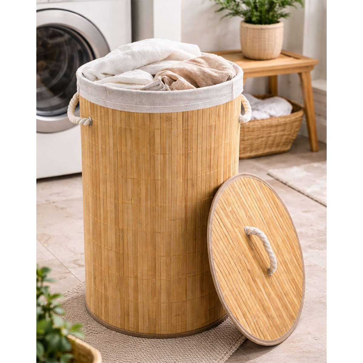 Grand panier à linge tressé à la main en bambou naturel avec couvercle et deux poignées, tissus intérieur amovible en lin, boîte de tri, boîte de rangement د.ت118.000 Le prix initial était : د.ت118.000.د.ت85.000Le prix actuel est : د.ت85.000.