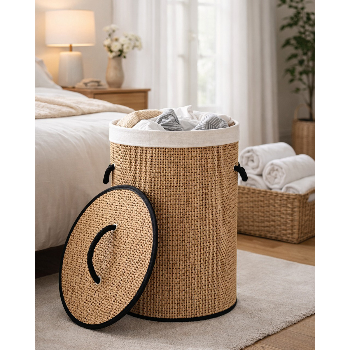Découvrez les pièces uniques issues de notre collection de Rangement. Grand panier à linge tressé à la main en bambou naturel avec couvercle et deux poignées, tissus intérieur amovible en lin. Boîte de tri, boîte de rangement pour tout autre objet souhaitons l’organiser avec style.
