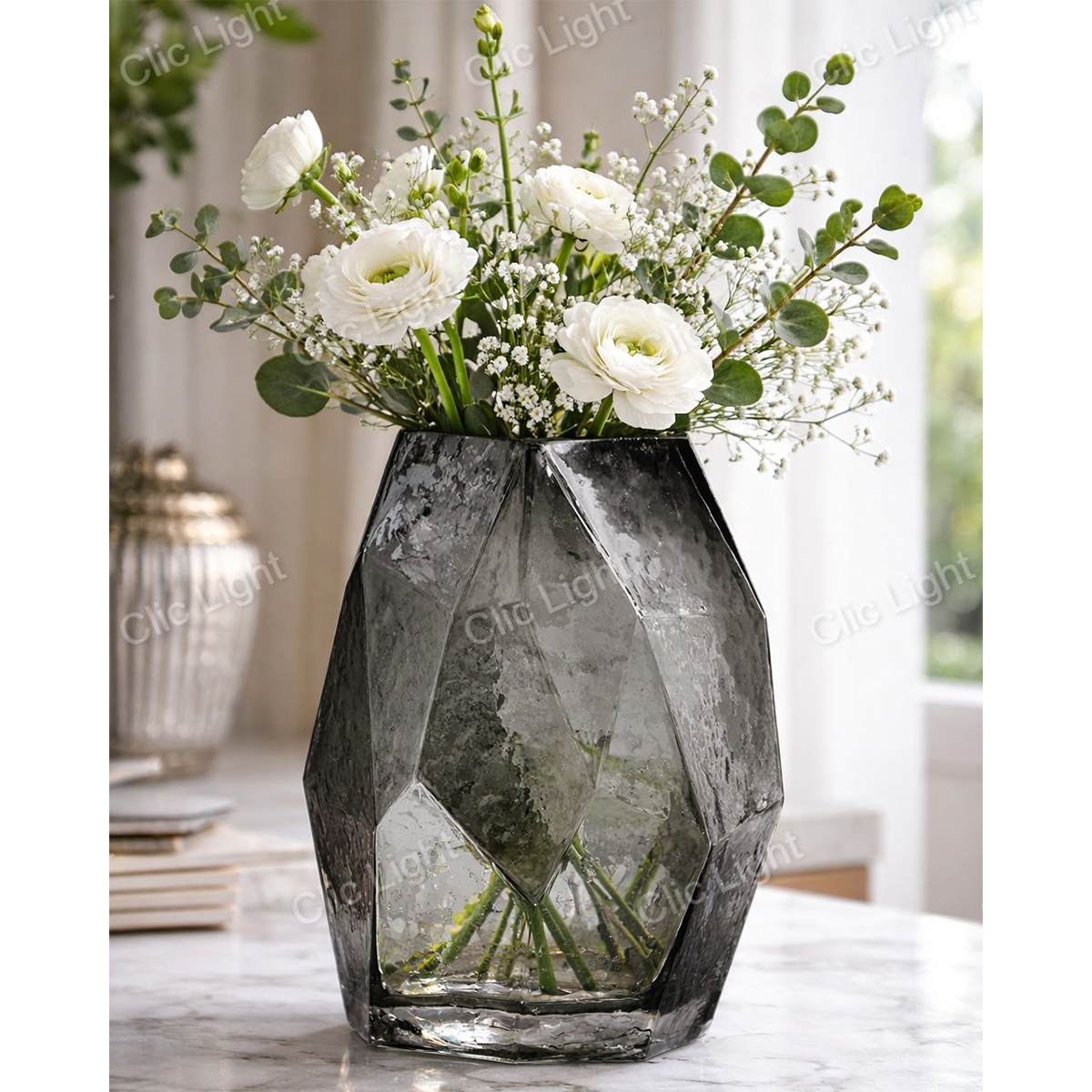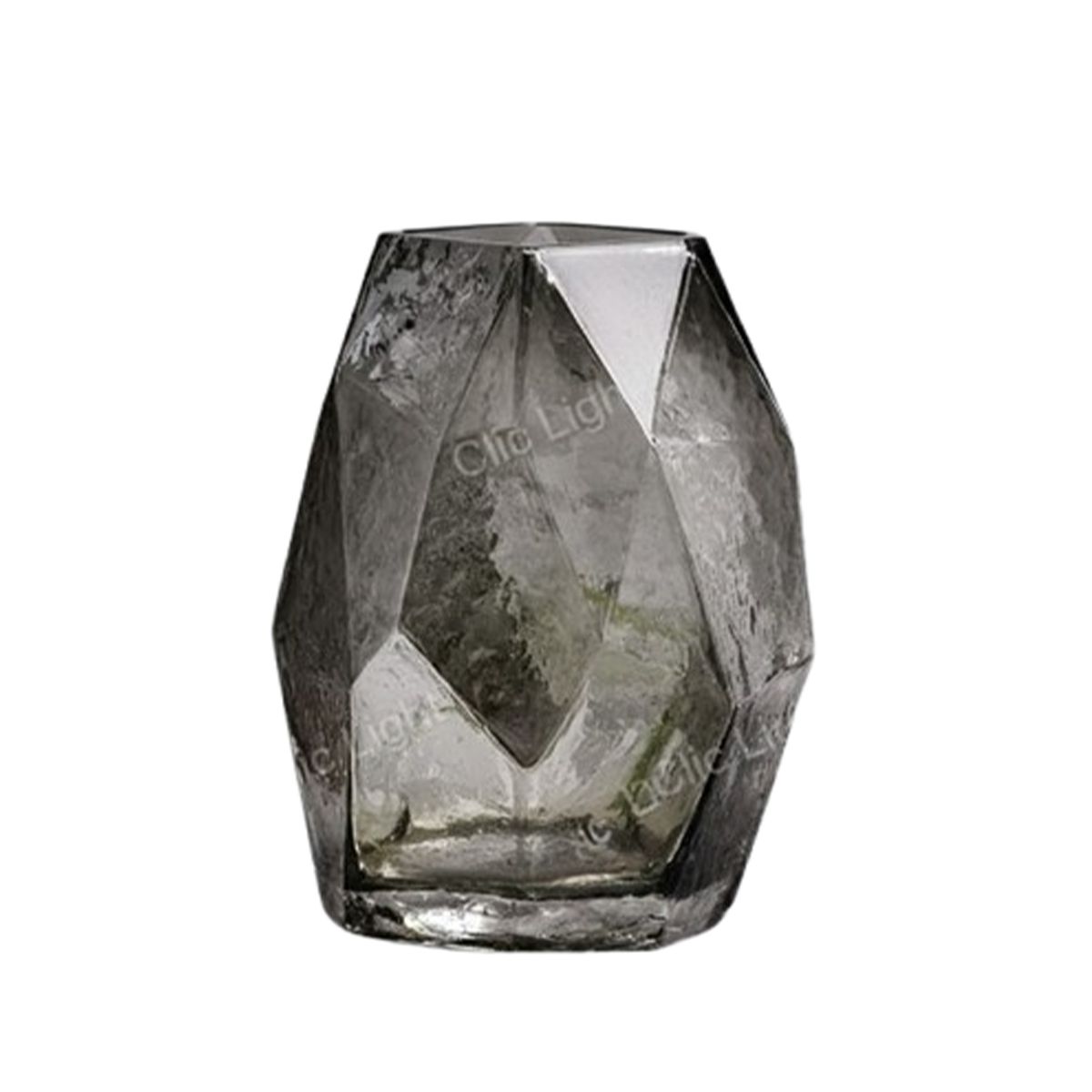 AccueilArt & déco Grand vase en verre gris à facettes de style moderne et géométrique. Fait à la main