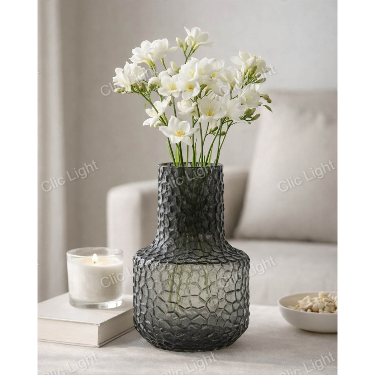 Vase en verre. Donnez du charme à votre salon et décorez-le avec ce vase de table accrocheur à la texture unique. Fabriqué en verre avec une grande précision, il est facile à entretenir. Le vase est superbe lorsqu’il est associé à des fleurs naturelles ou artificielles et comme pièce d’appoint..