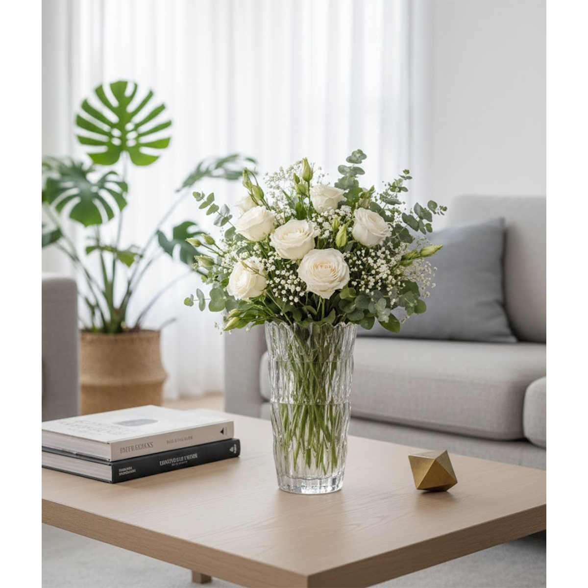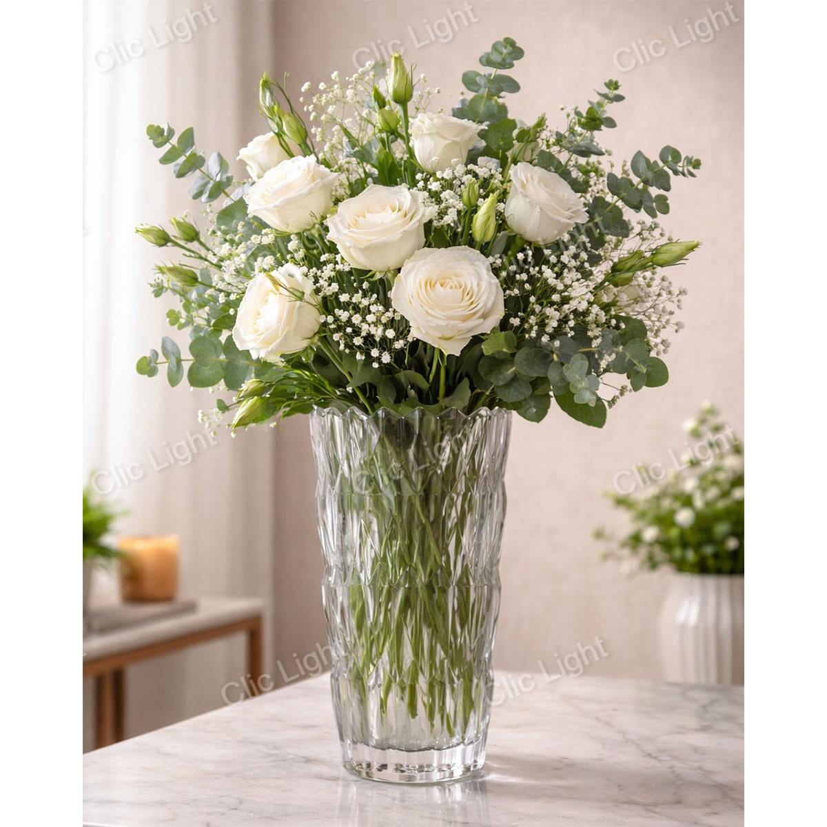 Vase en verre. Donnez du charme à votre salon et décorez-le avec ce vase de table accrocheur à la texture unique. Fabriqué en verre avec une grande précision, il est facile à entretenir. Le vase est superbe lorsqu’il est associé à des fleurs naturelles ou artificielles et comme pièce d’appoint..