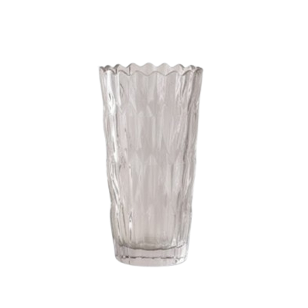 AccueilArt & déco Grand vase en verre transparent évasé avec une texture froissée en relief. Fait à la main