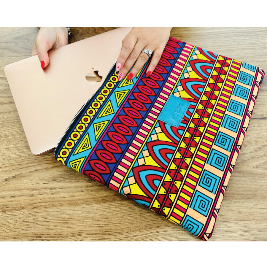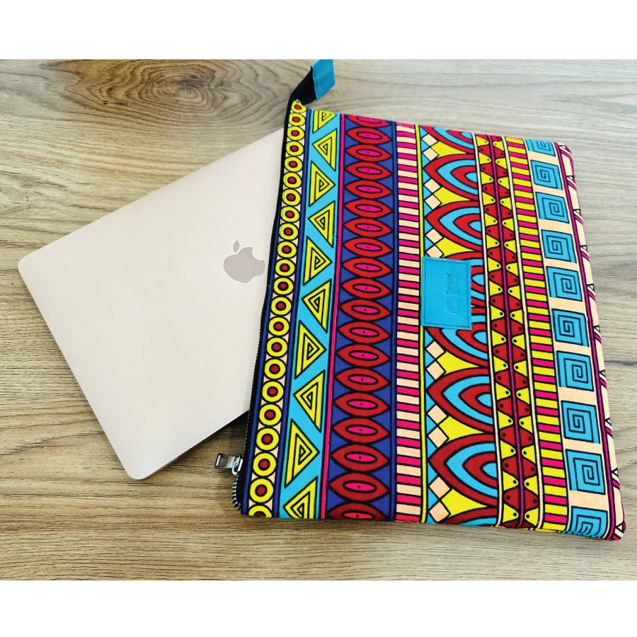 AccueilBagagerie et MaroquinerieCartables et mallettes Housse ordinateur portable originale en tissu coton wax pour MacBook ou taille équivalente 13 pouces N° 1