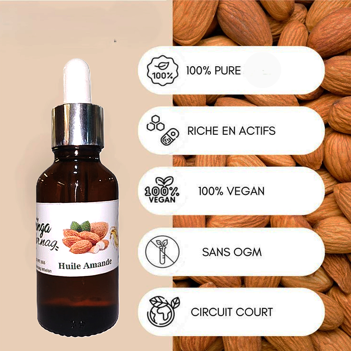 Permet de lutter contre les pellicules : L’huile d’amande douce n’est pas seulement apaisante, elle contribue également à assainir vos racines et à prévenir le développement de pellicules. Elle régule la production de sébum par vos glandes sébacées, évitant ainsi que votre cuir chevelu ne regraisse trop rapidement ou, au contraire, ne manque de sébum et ne s’assèche.