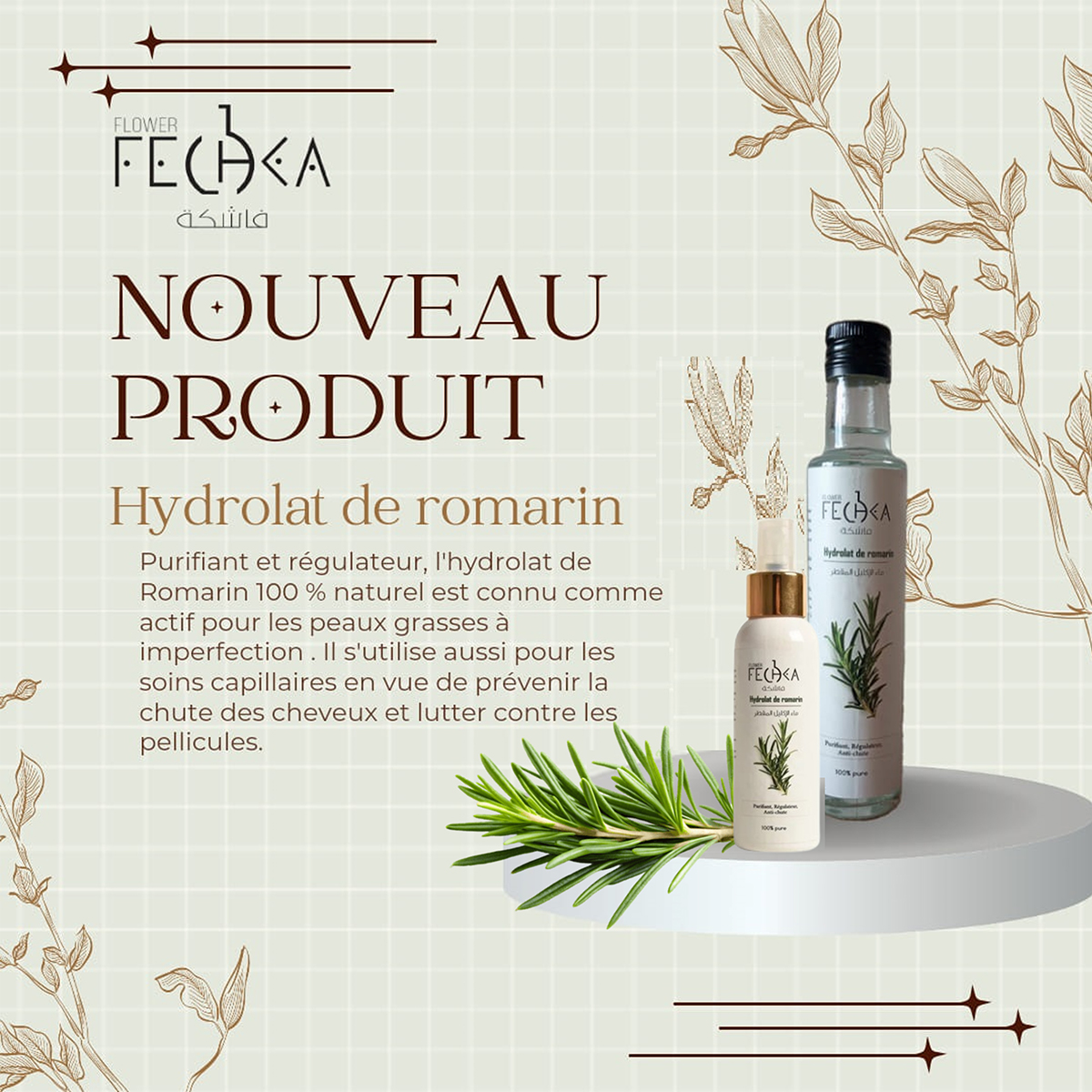 Hydrolat de romarin de Fechka Flower Nabeul 100 ml Spray