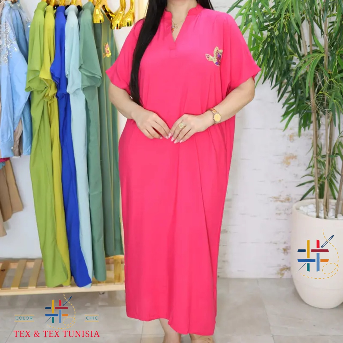 Découvrez les pièces uniques issues de notre collection Jebba fashion printemps-été 2025. Ces pièces prestigieuses sont des œuvres réalisées dans notre atelier. Jebba demi manche motif asfour en broderie paillettes col officier, en rose fuchsia la couleur vivante et pleine d’énergie avec une beauté envoûtante. Confectionner avec de tissu sélectionné confortable et super doux, procurant une sensation de douceur et de confort incomparable