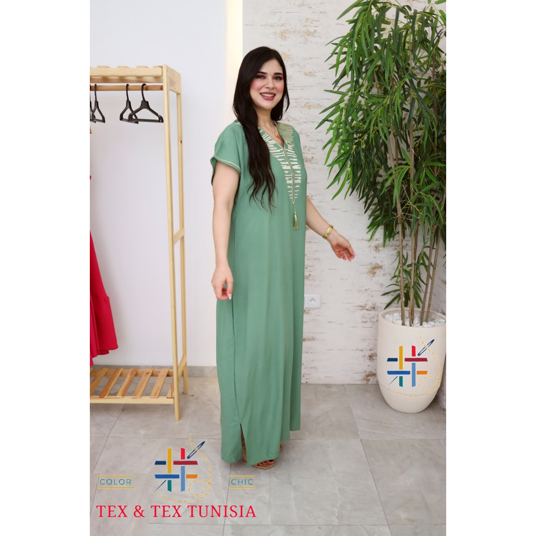 Découvrez les pièces uniques issues de notre collection Jebba fashion printemps-été 2025. Ces pièces prestigieuses sont des œuvres réalisées dans notre atelier. Jebba demi manche motif asfour en broderie paillettes col officier, en vert rotana la couleur qui est synonyme de douceur, de quiétude et de sérénité et possède aussi cette dimension de rêve. Confectionner avec de tissu sélectionné confortable et super doux, procurant une sensation de douceur et de confort incomparable