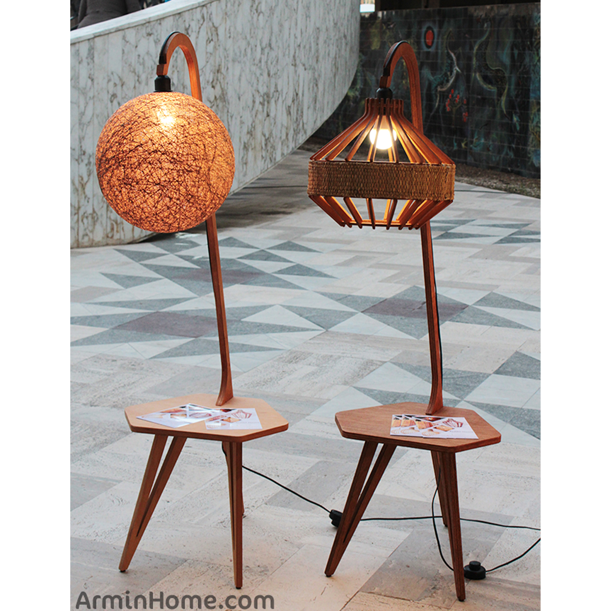 Lampadaire rustique avec table haute gamme en marron de style vintage de la Collection Grand Classique N° 15