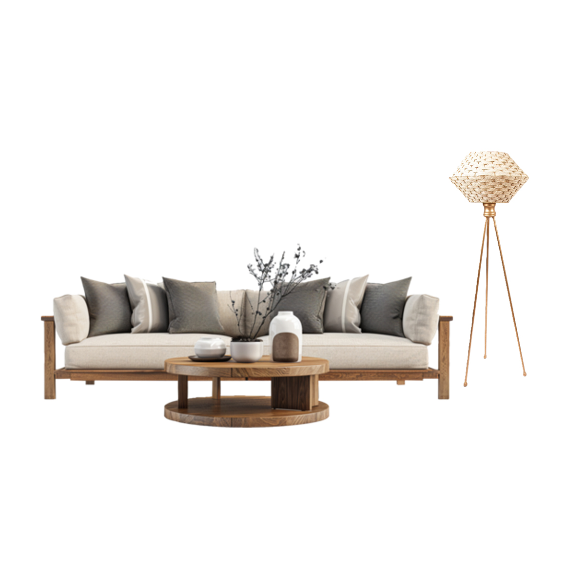 Lampadaire trépieds rustique design géométriques tressée à la main en fibre de palmier
