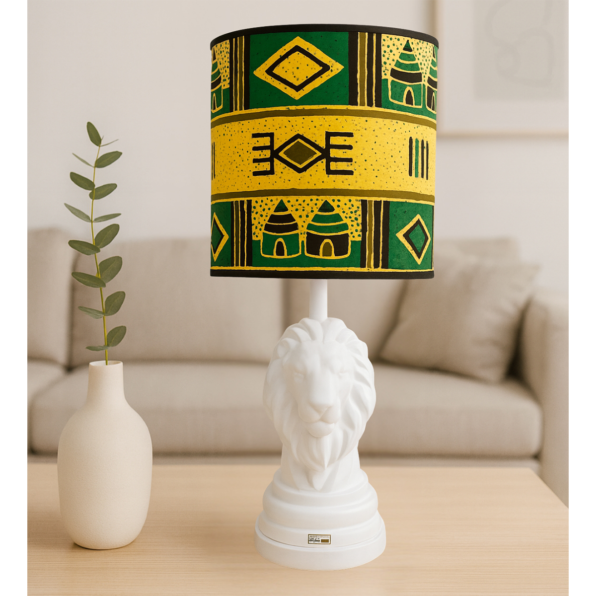 AccueilMaison & décoLuminaire Lampe à poser abat-jour de haute gamme en wax pied en céramique figurines lion de la collection Roi de la jungle N° 13