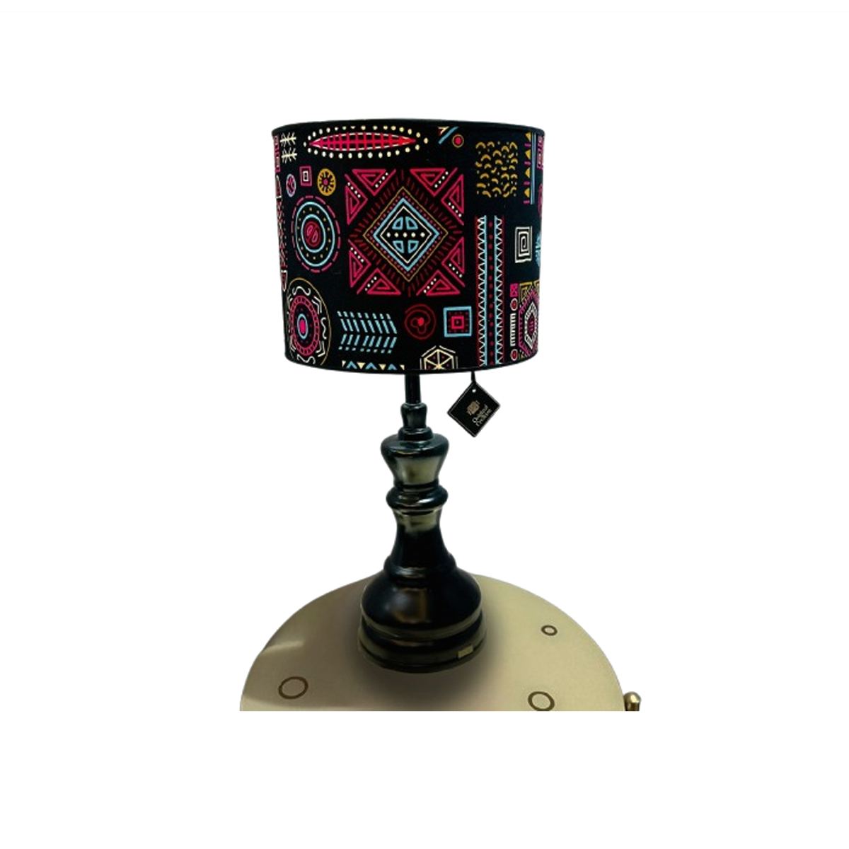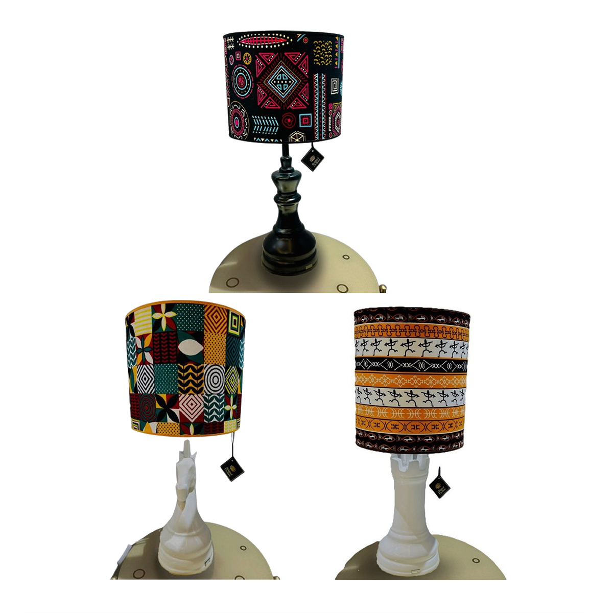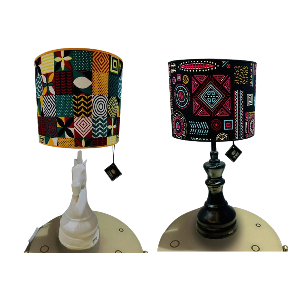 Entièrement fabriqué à la main, l’abat-jour a été confectionné en tissus africain wax, structure en acier traitée, Le pied a été confectionné en céramique avec un grand souci du détail et avec soin