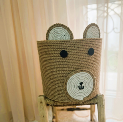 Panier de rangement pour chambre enfants en fibre végétale naturelle design petit chien