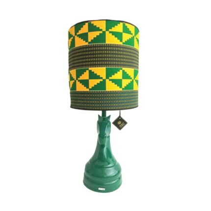 Entièrement fabriqué à la main, l’abat-jour a été confectionné en tissus africain wax, structure en acier traitée, Le pied a été confectionné en céramique avec un grand souci du détail et avec soin