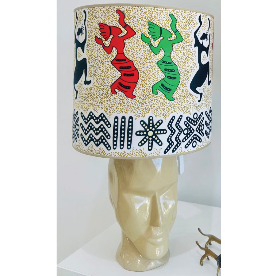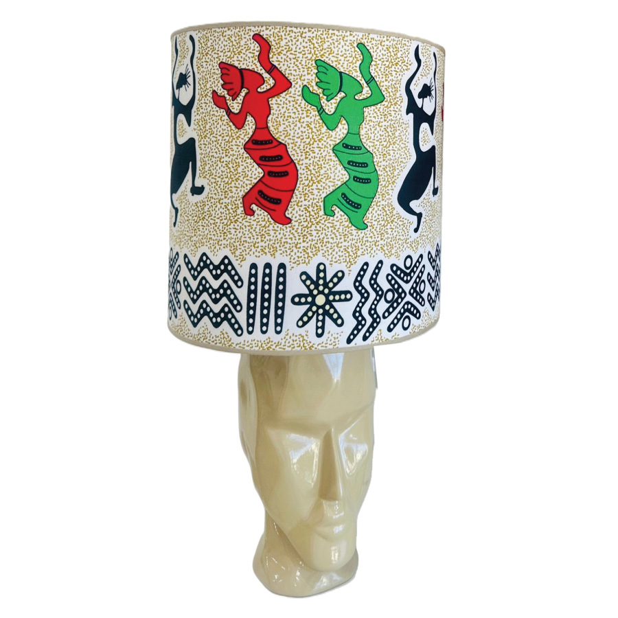 Lampe à poser abat-jour de haute gamme en wax pied figurines de Tête Moai vintage en céramique de la Collection Golden Art N°8