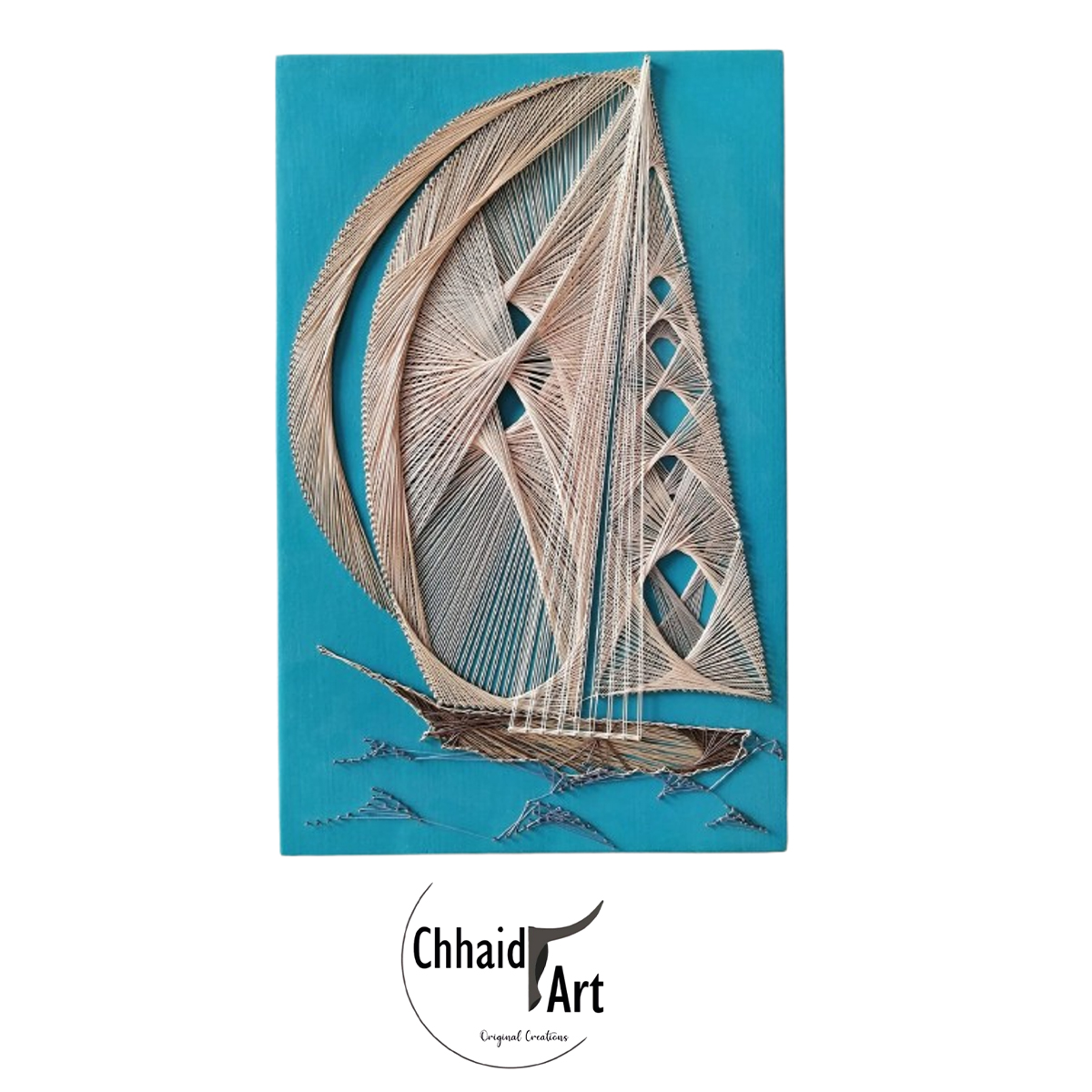Le fil dans l’art contemporain  – Tableau voilier nautique fil sur bois