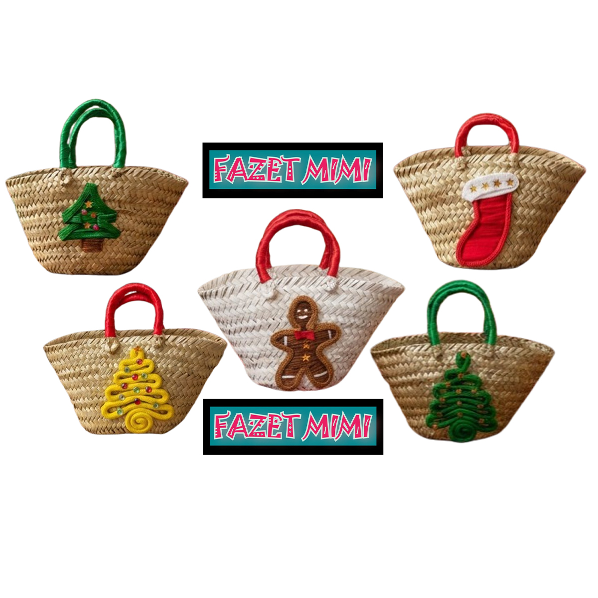 Mini couffin cadeau de Noël haut de gamme motif festif en fibre de palmier fait main FMM 2511