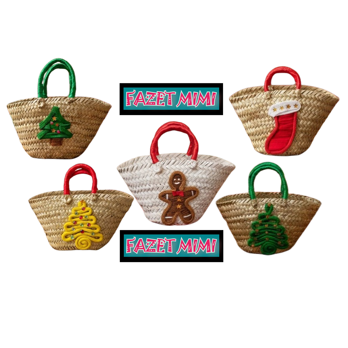 Mini couffin cadeau de Noël haut de gamme motif festif en fibre de palmier fait main FMM 2514