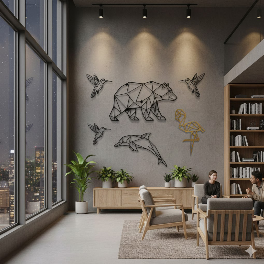 Découvrez les pièces uniques issues de notre collection Art mural. Ces pièces prestigieuses sont des œuvres réalisées dans notre atelier. Ours en  noir haut de gamme en bois, une pièce forte du style origami géométrique. C’est un excellent choix pour apporter un cachet d’originalité à votre espace de vie ou de travail.