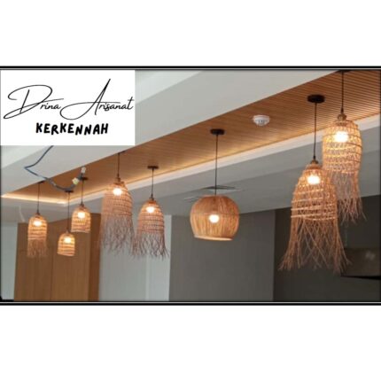 Applique mural luminaire design lustre ajouré fait main en fibre de palmier