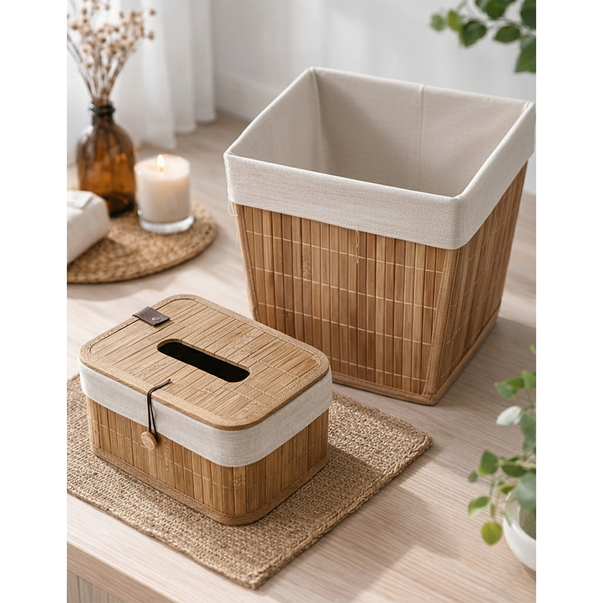 AccueilMaison & décoRangements Pack de 2 Paniers de rangement en bambou 1 Paniers de rangement et 1 boîte distributeur à papier, style vintage
