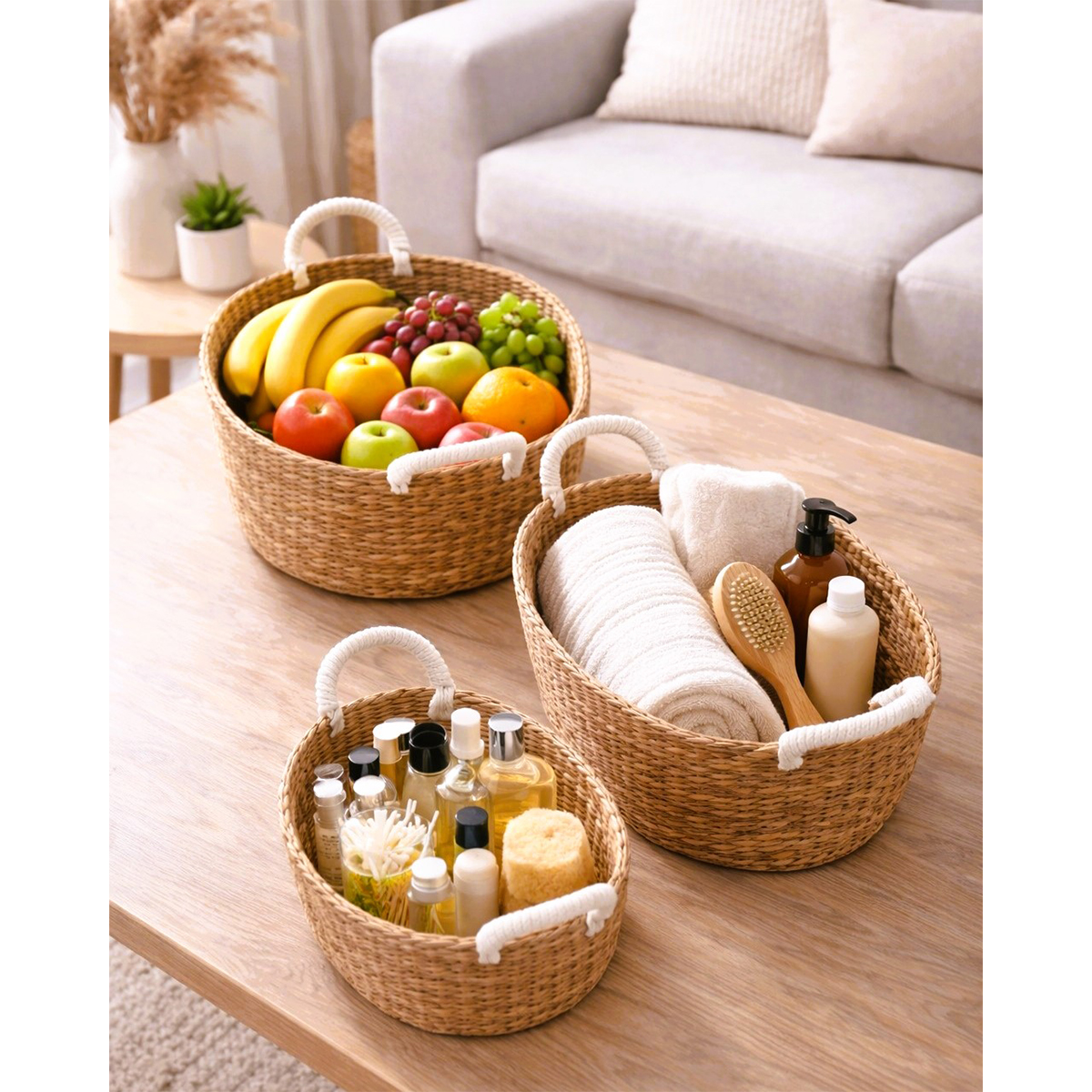 Pack de 3 Paniers de rangement tressé à la main en bambou, style vintage, boîte de tri, boîte de rangement د.ت98.000 Le prix initial était : د.ت98.000.د.ت88.000Le prix actuel est : د.ت88.000.