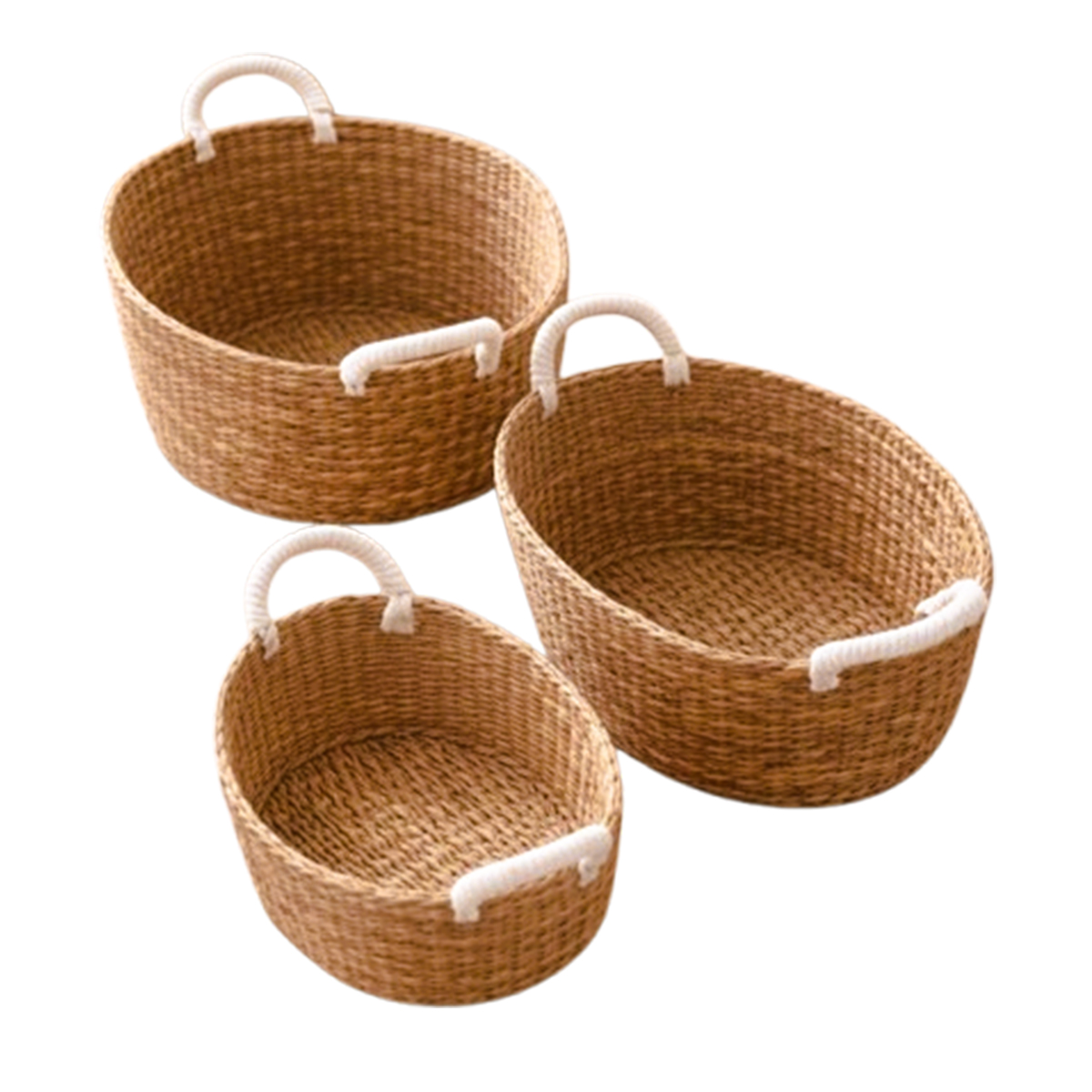 Pack de 3 Paniers de rangement tressé à la main en bambou avec deux poignées avec deux poignées, style vintage, boîte de tri, boîte de rangement