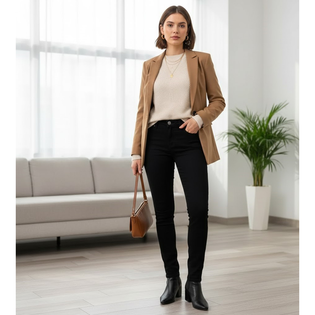 • Des tenues formelles Des pantalons de tailleur avec un ajout de Lycra sont disponibles, offrant un look élégant avec un confort accru, permettant de bouger librement tout au long de la journée