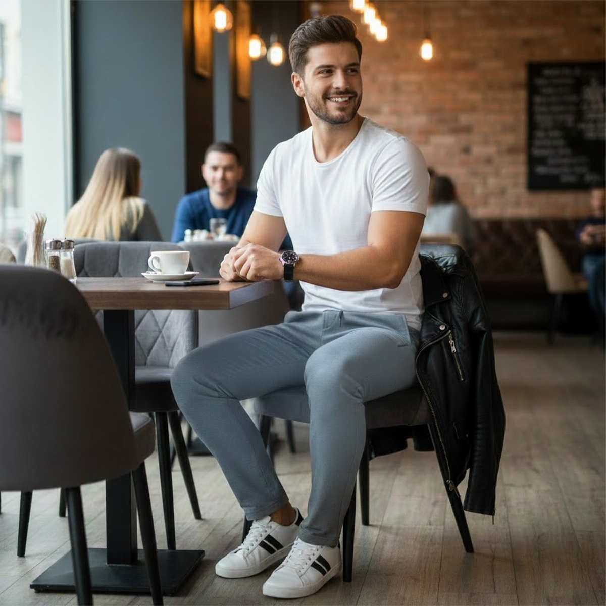• Le slim fit : Convient particulièrement bien aux silhouettes fines ou athlétiques. Si vous avez des jambes très musclées (cuisses imposantes), une coupe « Athletic Slim » ou « Tapered » (fuselée) sera souvent plus confortable car elle offre plus de place en haut tout en restant resserrée en bas.
